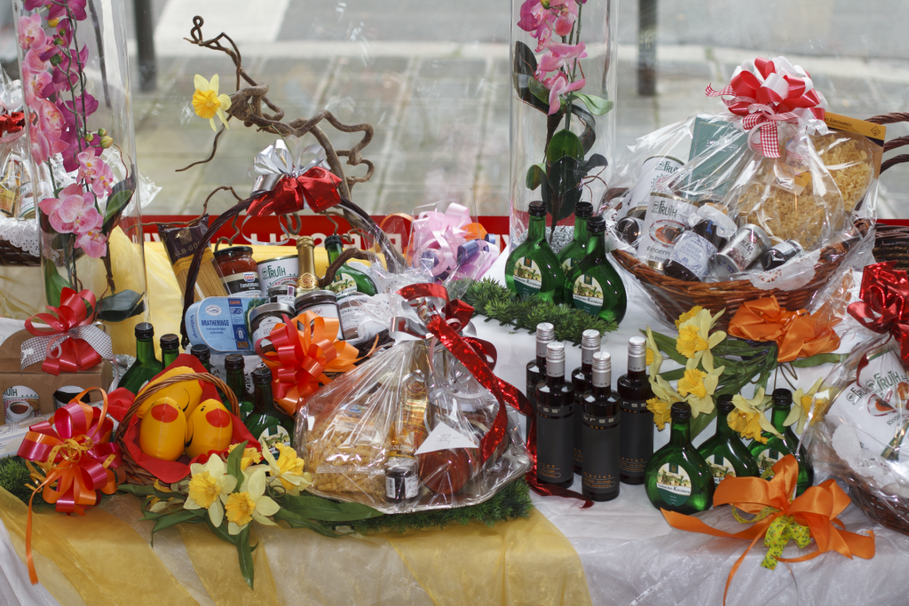 Nürnberger Bratwürsten, Partyschnitzel, Partyfleischküchle, gegrilltem Bündle und Gewürzbündle und Hähnchenschlegel